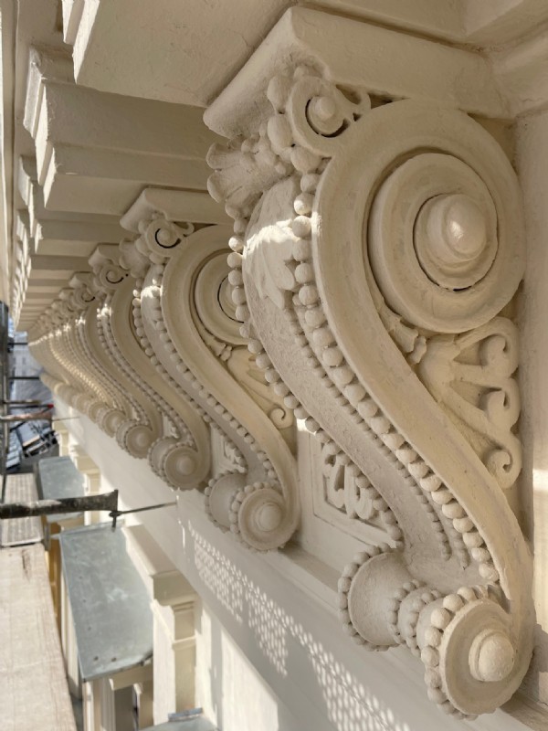 Detailgetreue Sanierung der Straßenfassade des Gebäudes, in dem sich das berühmte Wiener Colosseum befand.